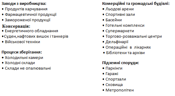 • Створення необхідного мікроклімату в процесі консервації обладнання та техніки.