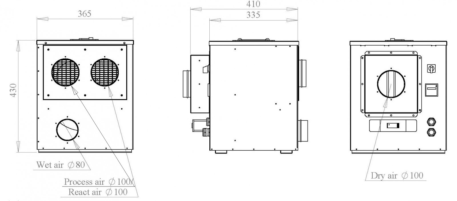 Осушувач повітря Desiccant Technologies Group MDC250 Customized (з постнагрівачем) призначений для ефективного контролю вологості та температури повітря всередині приміщень. Осушувач оснащений постнагрівачем для додаткового підігріву робочого повітря. Може працювати як автономне обладнання, так і в комплексі з системою обробки повітря. Для роботи в режимі рециркуляції установці необхідна додаткова опція  ̶ панель з отворами для приєднання повітропроводів.